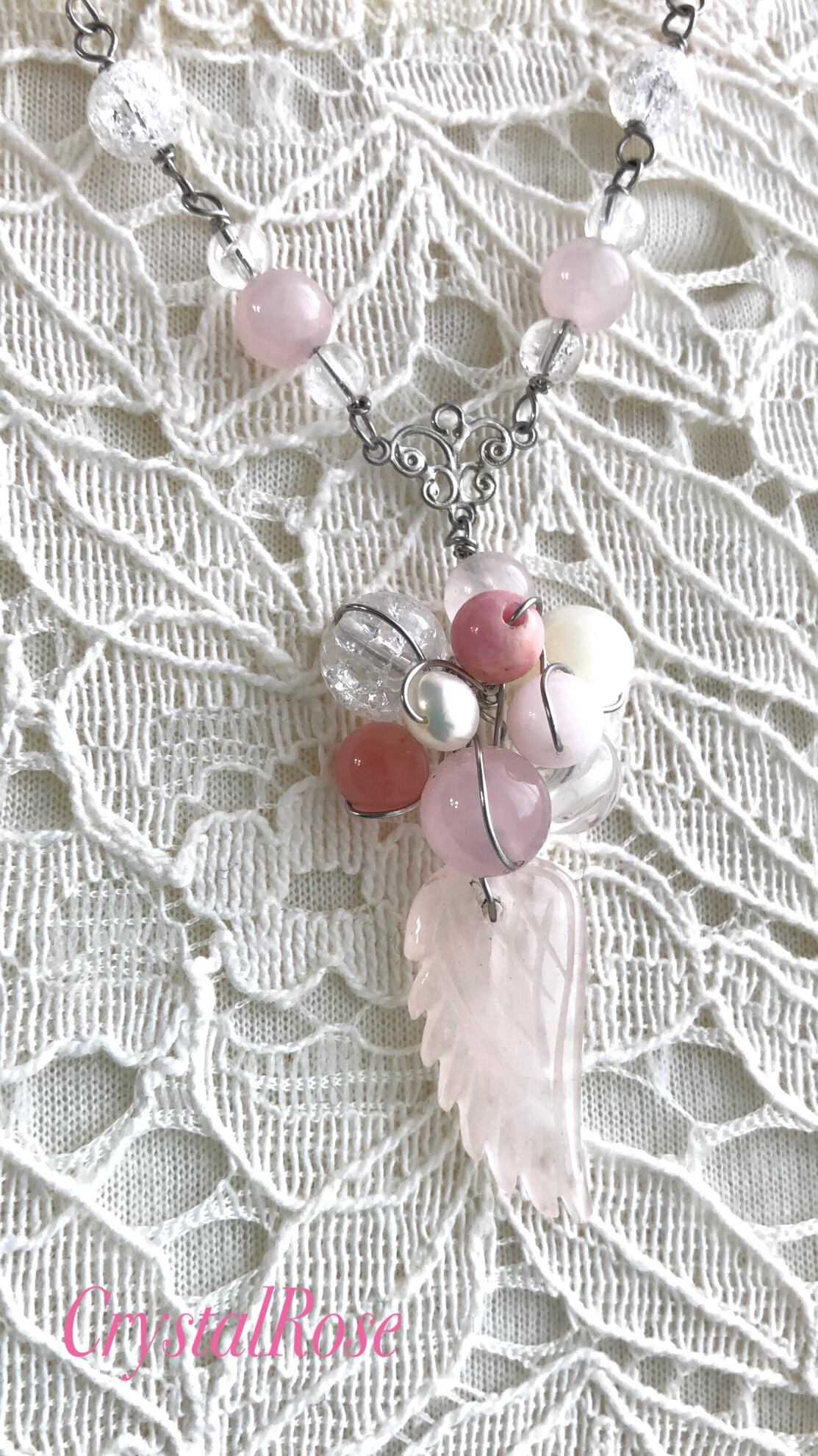 ローズクォーツの天使の羽が可愛いネックレスです。